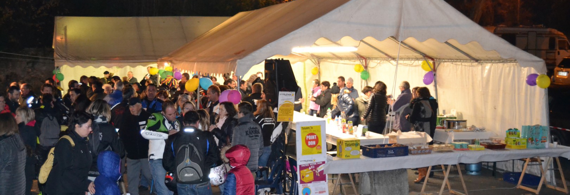 Pour le Téléthon 2016 un bon groupe de bénévoles, tous très motivés, se sont mobilisés pour proposer à la population diverses façons d’apporter une aide aux malades et à leur famille. Ainsi toute la matinée une vente de gâteaux était organisée sous les couverts. L’après-midi après avoir applaudi les musiciens et danseuses de l’association Mon-Ni-Mon, quelques 80 marcheurs se sont lancés à l’assaut du Pic de Caylou et sont redescendu au cœur du village à la lueur des flambeaux.